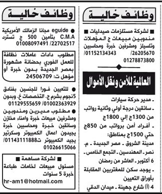 خالية من جريدة الاهرام فرص عمل في صحيفة الاهرام 31 -5-2013 الاهرام الجمعة
